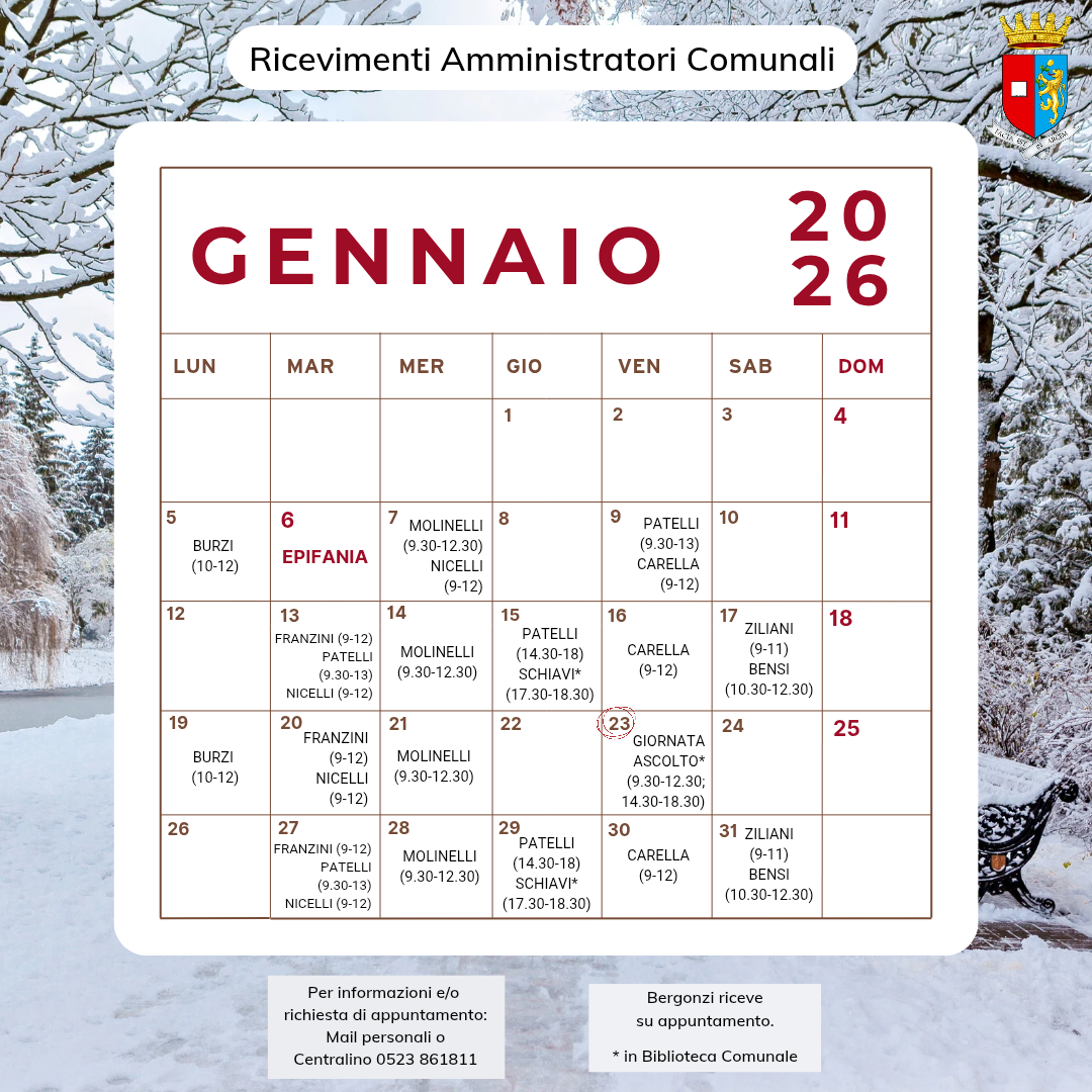 Si pubblicano le giornate di ricevimento degli Amministratori per il mese di gennaio 2025
